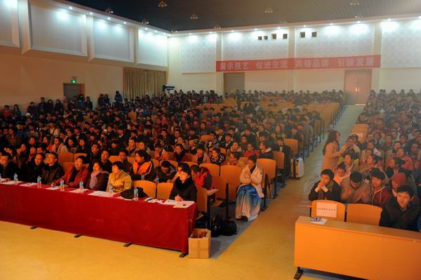 12月26日晚19:00—22:00,由学院党委宣传部主办的“迎新年、共圆中国梦”合唱比赛在小哨校区礼堂隆重举行。学院党委书记崔金赋、党委副书记赵刚、俞浩副院长,院长办公室主任金吉斌、以及各系部党总支书记一并出席比赛现场并担任赛事评委。来自学院五系部的8支合唱队伍、学院合唱队、以及师生观众近900人一同参与并观赏了精彩的合唱表演。合唱比赛由管理与信息工程系妥丽娟老师主持。崔金赋书记上台致辞。