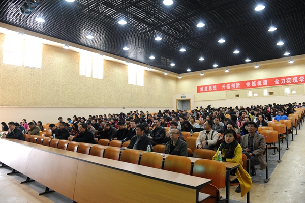 学校领导,副科以上干部,宣传部、组织部、统战部、学生处、团委、思想政治理论教学部全体教师,经济管理学院学生代表共计700余人济济一堂聆听了报告。(党委宣传部供稿)