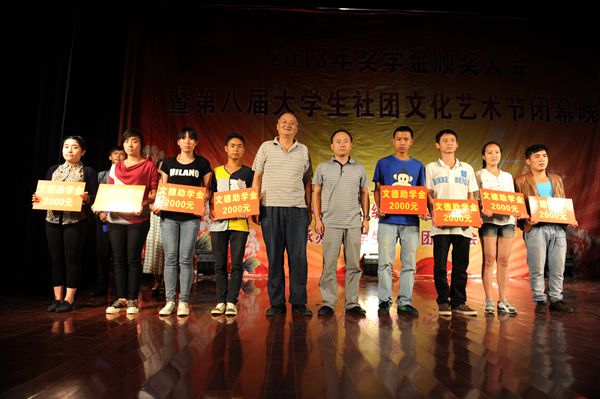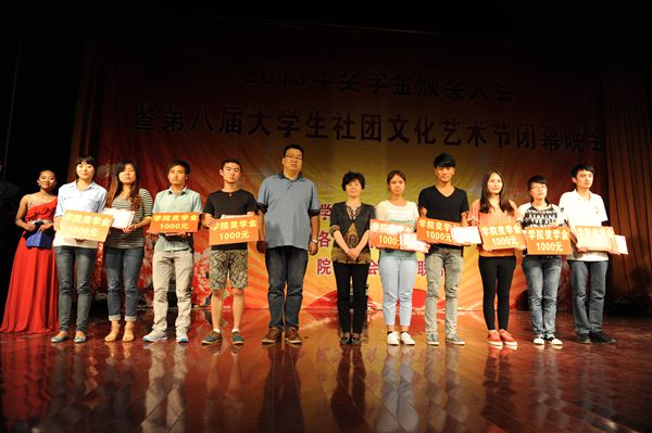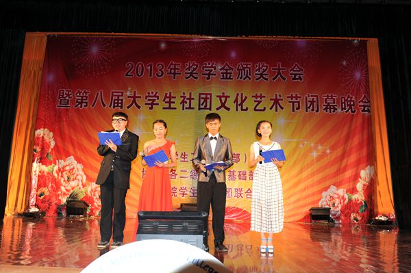 6月24日晚上7点30分,学校在小哨校区礼堂隆重举行2013年各级奖学金颁奖典礼暨第八届大学生社团文化艺术节闭幕式,党委书记崔金赋、院长李永忠出席并上台亲自为国家级奖学金获奖同学颁奖。出席会议的还有分管学生工作副院长俞浩,党委宣传部部长冯志宏、对外合作交流处处长凌军、学生工作处处长周诚,以及党院办、基础部、各二级学院的领导,部分教师、辅导员、班主任,二级学院的获奖同学、学生代表等近900人济济一堂参加了颁奖典礼。