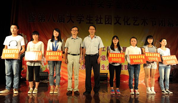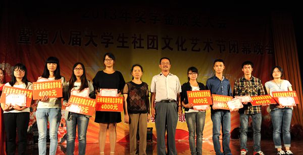 颁奖典礼首先由学校党委书记崔金赋、院长李永忠上台为荣获国家奖学金的5名同学,每人奖金8000元;为荣获云南省政府奖学金的7名同学颁奖,每人奖金6000元。